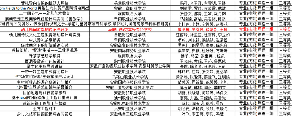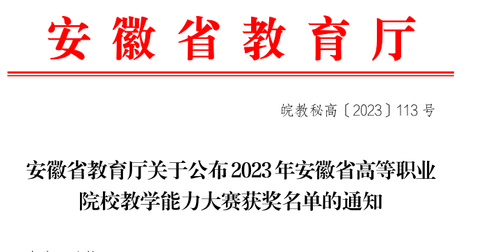 近日,由安徽省教育厅举办的2023年安徽省高等职业院校教学能力大赛获奖名单已揭晓,全省65所职业院校共510件作品报名参赛。我校学前教育学院黄夕梅、吴春悦、褚清新、王玲四位教师组成的教学团队在专业课程一组中获得了省三等奖的好成绩。