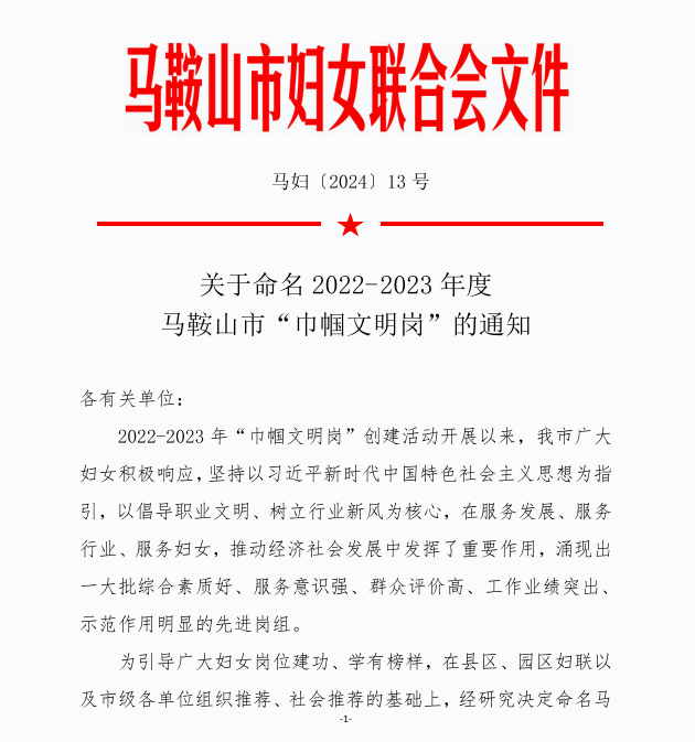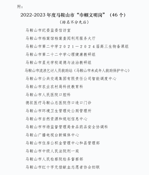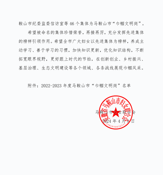 喜报 —— 马鞍山师范高等专科学校学前教育学院被命名为2022-2023年度马鞍山市“巾帼文明岗”