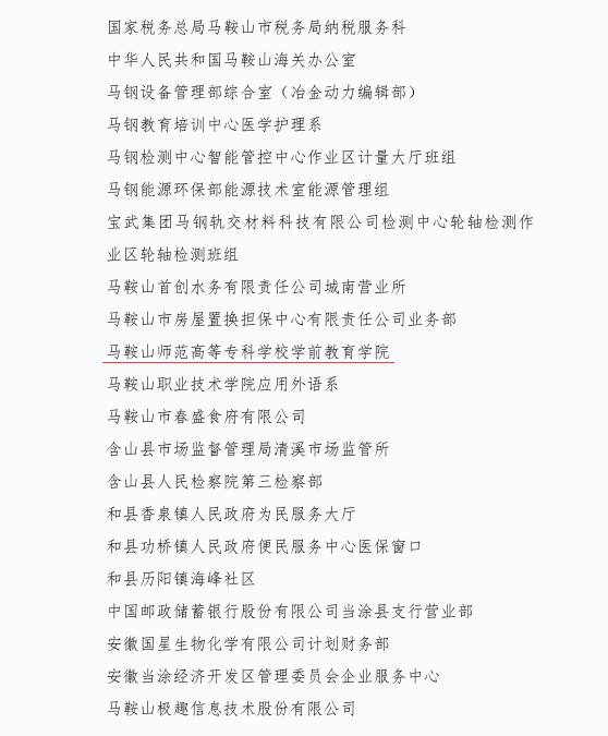 近日,马鞍山师范高等专科学校学前教育学院被命名为2022-2023年度马鞍山市“巾帼