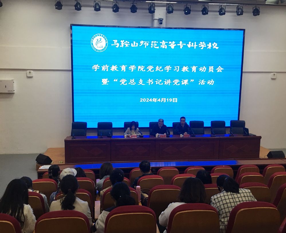4月19日上午,学前教育学院在滨江校区行政楼一楼报告厅举行了党纪学习教育动员会暨“党总支书记讲党课”活动,部署学院党纪学习教育相关工作,开展“党总支书记讲党课”活动。校党委委员、学前教育学院党总支书记、院长栗亮主持活动。