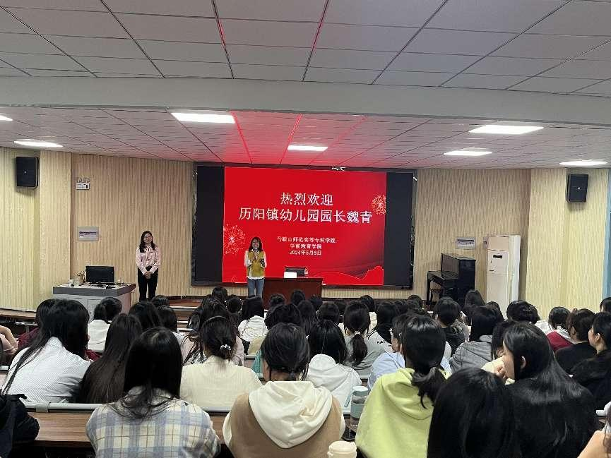 为了进一步提升学前教育专业学生的实践能力和职业素养,5月8日,学前教育学院特邀历阳镇幼儿园园长魏青为学生们进行了一场别开生面的教师资格证面试培训。副院长黄夕梅主持此次培训会。