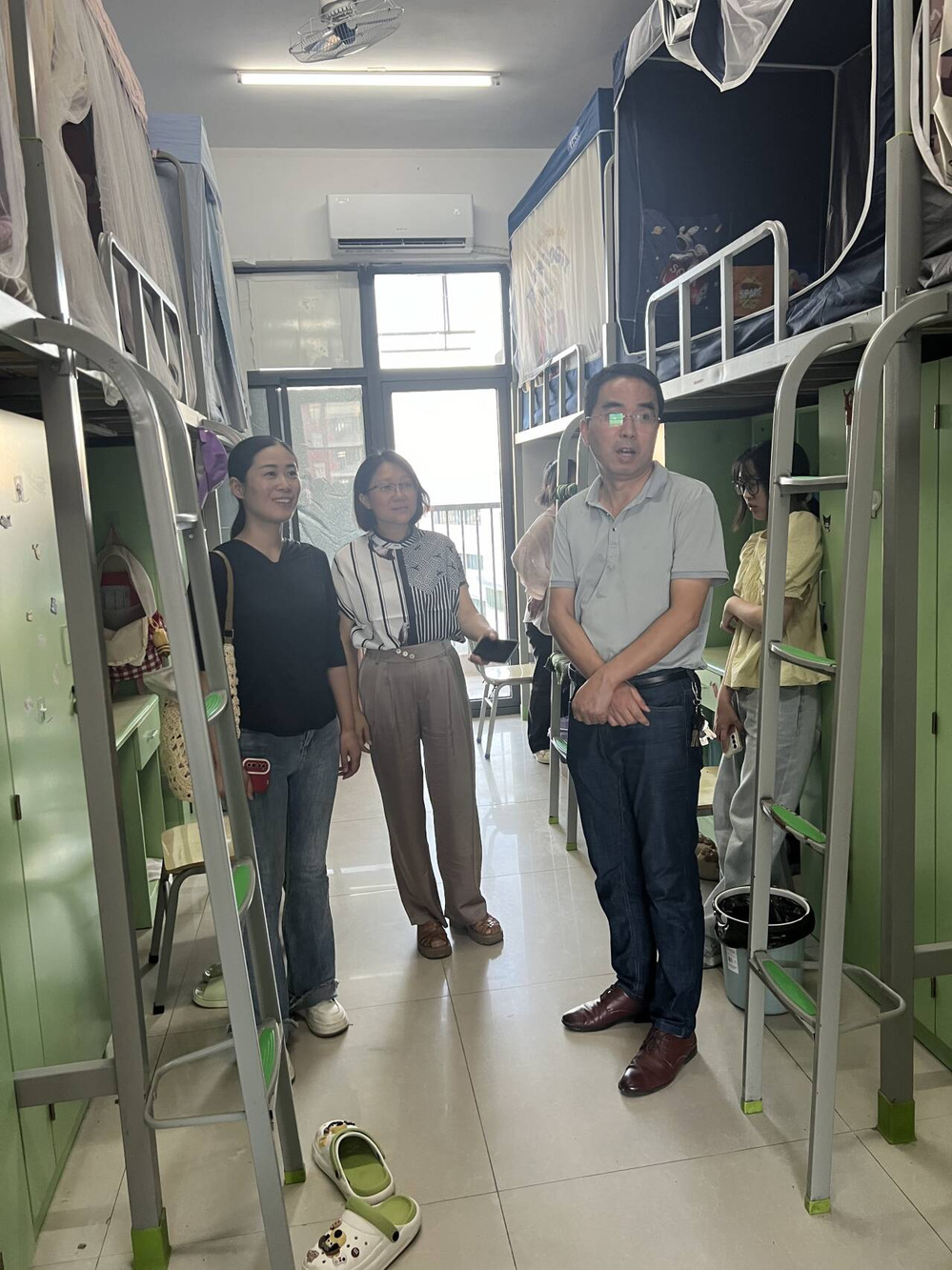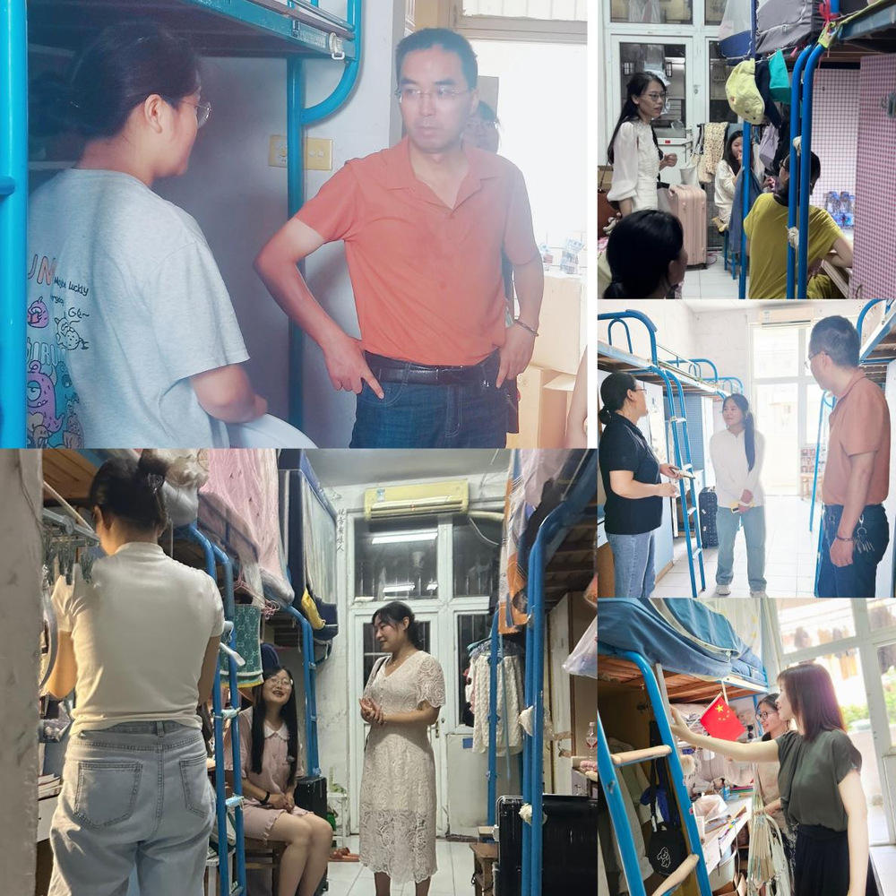 为及时了解学生的思想动态、健康情况、生活需求及宿舍卫生状况,营造良好的生活环境,进一步关心学生的心理状况,在老生返校后与新生报到后,学院领导带领学工团队第一时间到学生宿舍走访慰问。在实地走访过程中与学生亲切交谈,一方面对寝室安全隐患进行细心排查,督促学生提高个人安全防范意识,确保学生居住环境安全舒适;另一方面询问了解学生当前阶段存在的困惑或难题,尤其关心学生们的心理健康状态,鼓励学生及时调整好暑假后的个人心理状态和生活节奏,结合实际,设定合理的学期目标。
