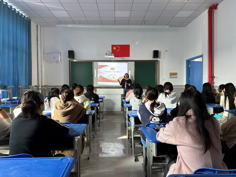 近日,学院举办2024级新生入党启蒙教育活动,由新生辅导员李琴、查洪琴等老师组织学生学习中国共产党章程,讲解如何撰写和递交入党申请书,并组织开展微党课帮助同学们了解入党的基本流程等。