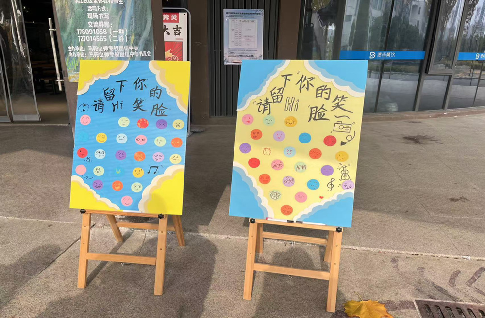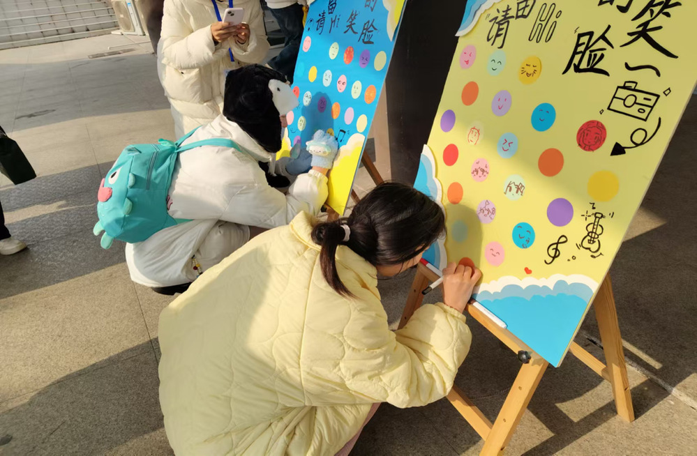 为助力同学们健康成长与全面发展,传递微笑力量,学前教育学院于2024年12月12日在滨江校区智慧食堂门口开展“留下你的笑脸”心理健康绘画活动。