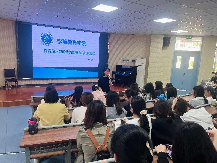 4月9日下午,副院长黄夕梅主持召开了滨江校区全体见习学生动员会。会上,教秘鲁华倩布置见习任务;副院长黄夕梅就专业认同及见习重点与同学们进行现场交流;党总支副书记吴明亮特别强调了学生见习往返途中的交通安全,并提醒学生在幼儿园见习期间做好自我管理。