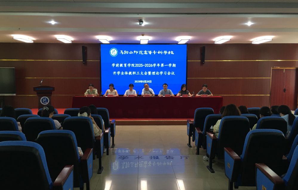 8月28日下午,学前教育学院在雨山校区图书馆学术报告厅召开了2025-2026学年第一学期开学全体教职工大会暨理论学习会议,部署新学期工作、传达学校新学期开学干部大会精神。校党委副书记、副校长杜维斌出席会议并讲话,校党委委员、组织人事处处长兼学前教育学院党总支书记全立荣主持会议。