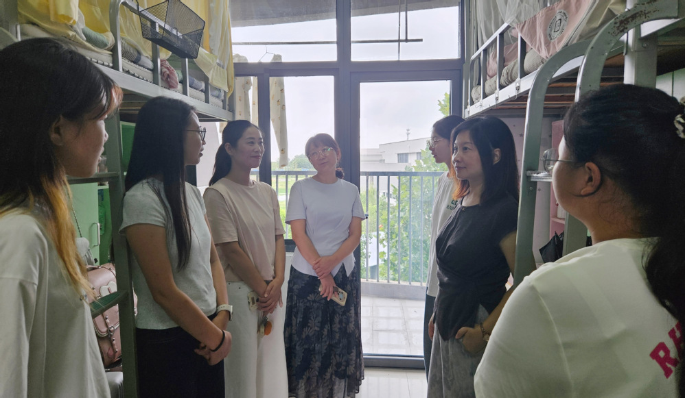 当天下午,学院副院长黄夕梅、副书记祝虹、团总支书记刘金枝以及新生辅导员童军霞老师走访新生宿舍。在宿舍里,老师们与新生及家长亲切交谈,询问他们的生活情况和入学感受,了解他们的需求和困难,并送上亲切关怀与鼓励。