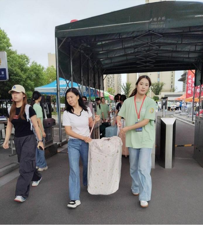 清晨,校园里早已热闹非凡,学院70名志愿者们身着统一服装,早早来到各自岗位。从校门口到报到点,从行李搬运到手续办理,他们全程陪伴新生,耐心解答疑问,帮忙搬运行李。一句句“欢迎新同学”,一张张热情洋溢的笑脸,让新生们初入校园便感受到家的温暖。一位新生激动地说:“刚进校园,学长学姐就热情地迎上来帮忙,在他们的引导下,报到流程一切都变得轻松顺利,真的特别感动。”