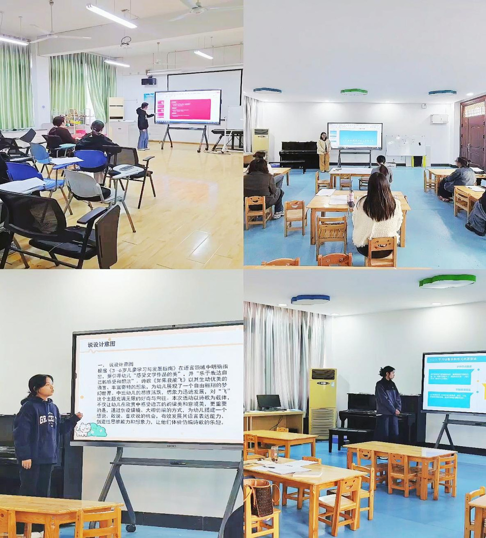 在现场考核环节将学生划分为4个小组开展说课实践。评审教师依据教育评价理论,从教学目标达成度、游戏化教学设计合理性、互动策略有效性等多维度评价指标,重点考察学生在教学设计与实施过程中,对“儿童意识”与“游戏精神”的理论融合能力及实践转化能力。学生们普遍展现了扎实的教学基本功,其中不乏令人眼前一亮的创新教案。