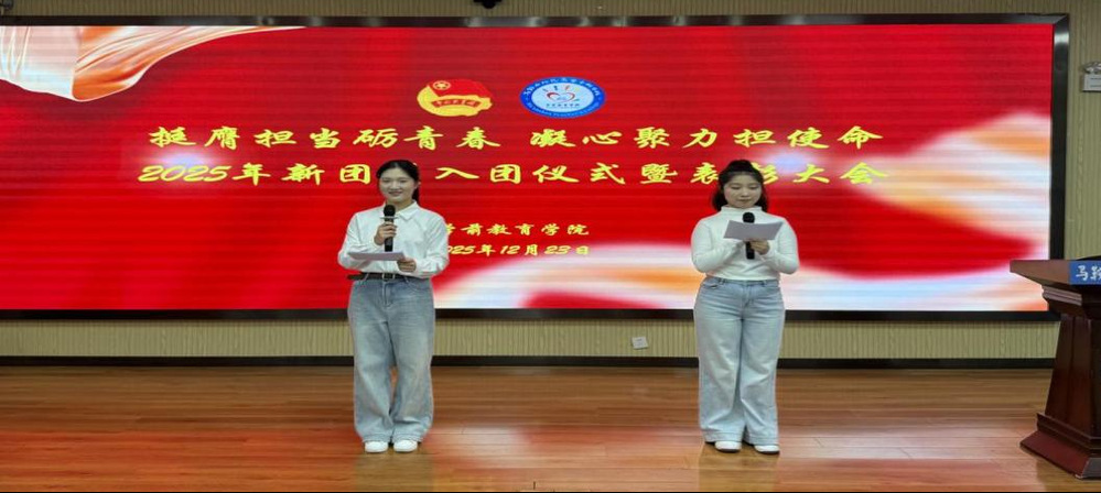为凝聚青春力量,筑牢理想信念根基,引导青年学子勇担时代使命,12月23日晚,学前教育学院在滨江校区F105报告厅举行2025年新团员入团仪式。学院团总支书记刘金枝、副书记童军霞以及全体新团员和部分老团员代表共同参与此次活动。